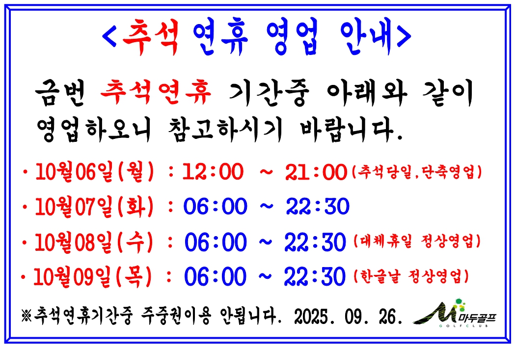 ±Ý¹ø Ãß¼® ¿¬ÈÞ ¿µ¾÷¾È³»