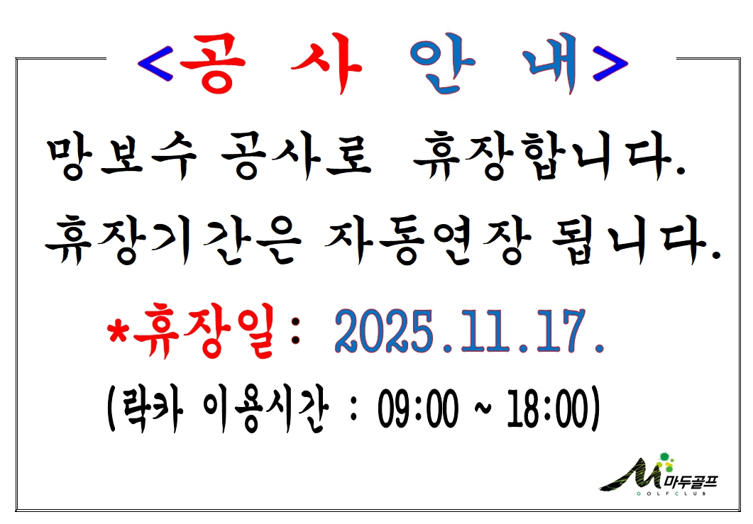 ¸Á°ø»ç·Î ÀÎÇÑ ÈÞÀå¾È³»-11.17(¿ù)
